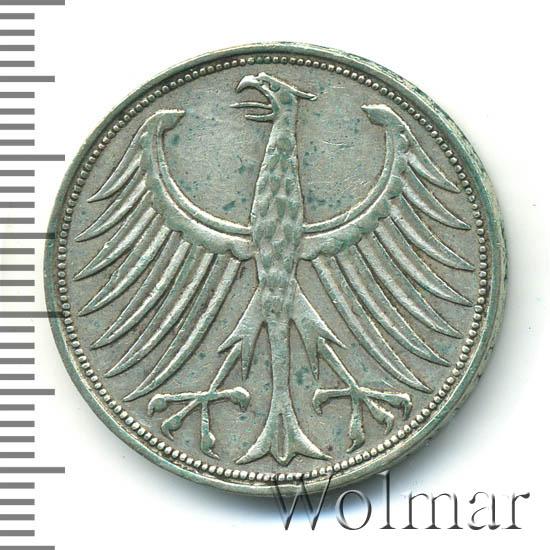 Реверс монеты 5 марок (deutsche mark) 1957 года J Германия