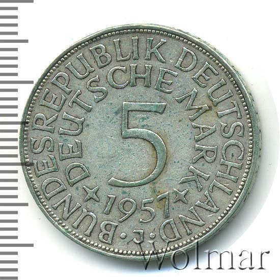 Аверс монеты 5 марок (deutsche mark) 1957 года J Германия