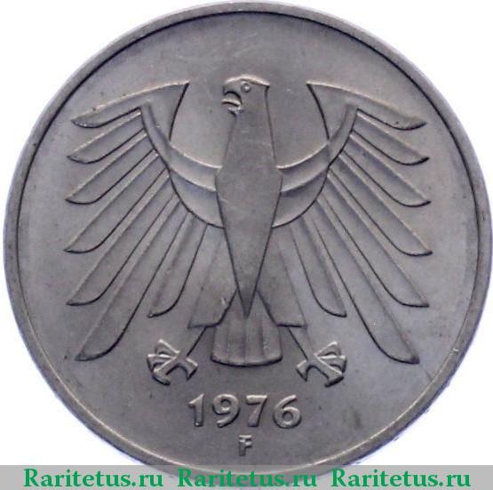Реверс монеты 5 марок (deutsche mark) 1976 года F Германия