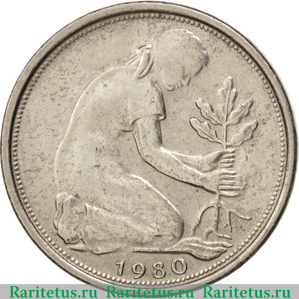 Реверс монеты 50 пфеннигов (pfennig) 1980 года F