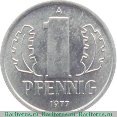 Аверс монеты 1 пфенниг (pfennig) 1977 года А