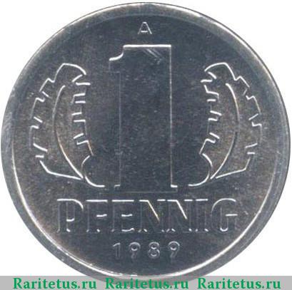 Цена на монету 1 пфенниг (pfennig) 1989 года А на сегодня, 27 октября 2025 года
