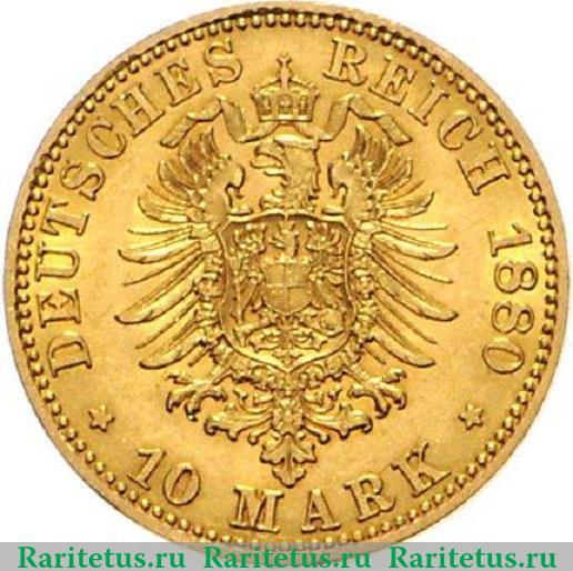Реверс монеты 10 марок (mark) 1880 года Германия (Империя)