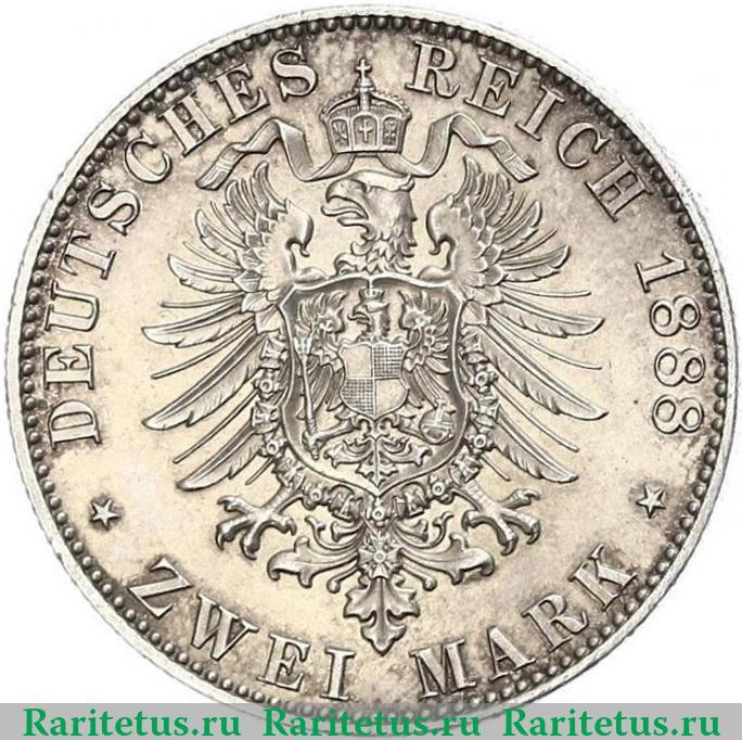'2 марки (mark) 1888 Германия (Империя)'