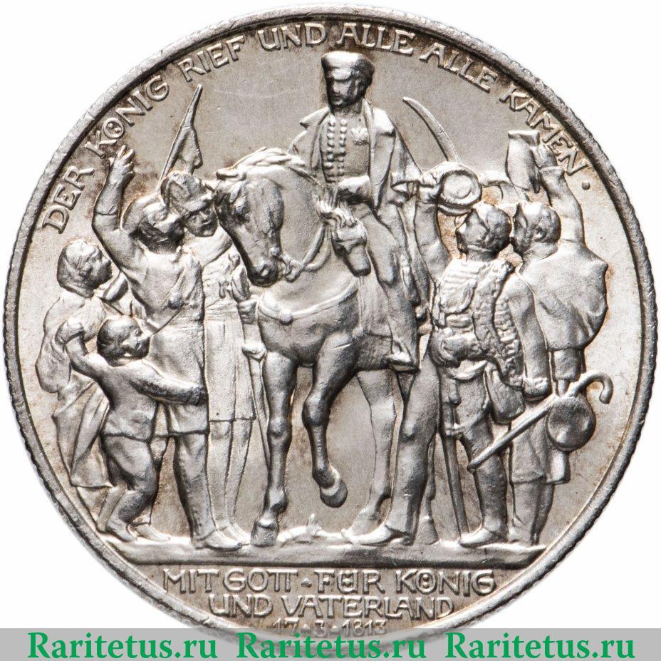 Германская Империя, Пруссия 2 марки (mark) 1913 "100 лет Победы над Наполеоном под Лейпцигом (Битва народов)" Аукцион: Monetnik Состояние: AU | 27.05.2022 |