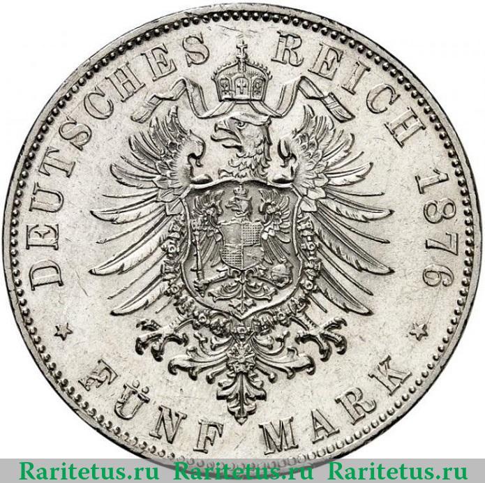 Реверс монеты 5 марок (mark) 1876 года Германия (Империя)