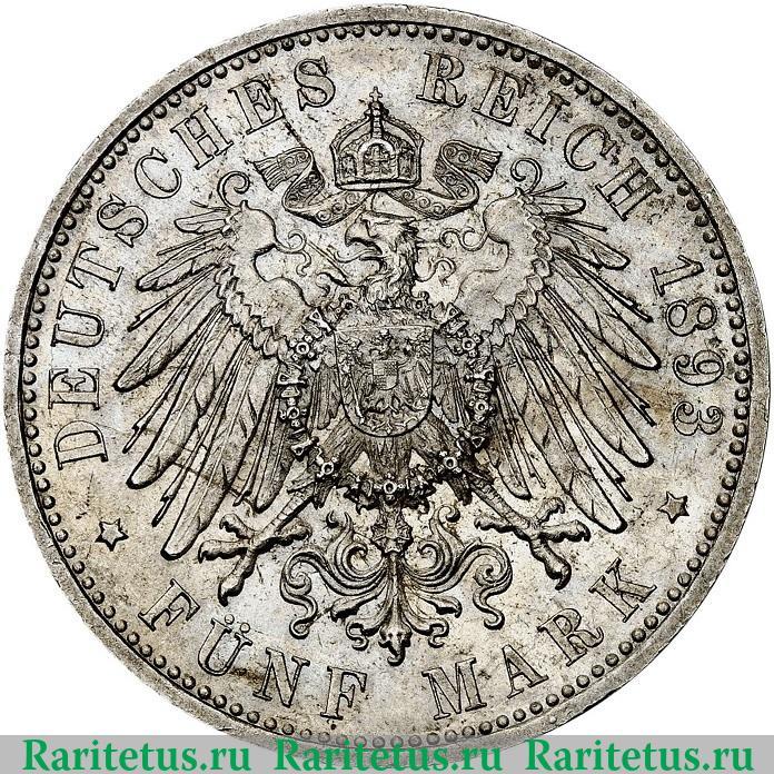 '5 марок (mark) 1893 Германия (Империя)'