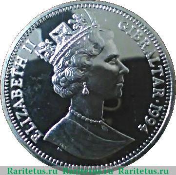 Аверс монеты 14 ЭКЮ 1994 года Гибралтар