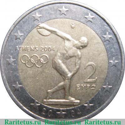 На внутреннем диске изображена статуя знаменитого античного скульптора Мирона «Дискобол». Слева от него — эмблема 28-й летней Олимпиады: надпись на английском языке «ATHENS 2004», переводится как «Афины 2004 год», под ней пять олимпийских колец. Справа от скульптуры надпись «2 ΕΥΡΩ», в переводе с греческого яз. «два евро».