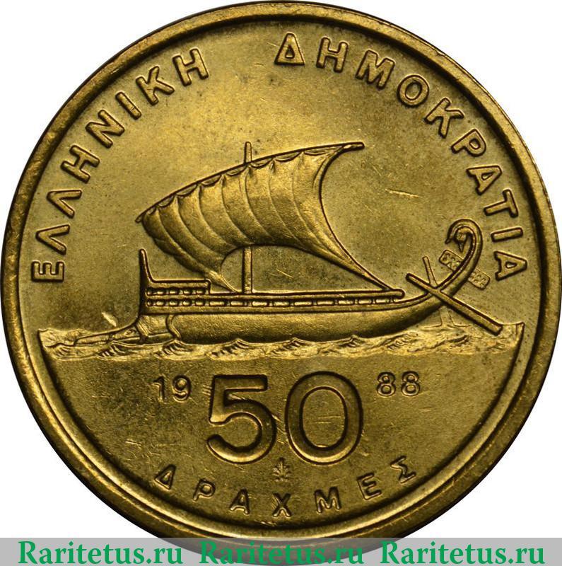 Цена на монету 50 драхм (drachmai) 1988 года на сегодня, 22 октября 2025 года