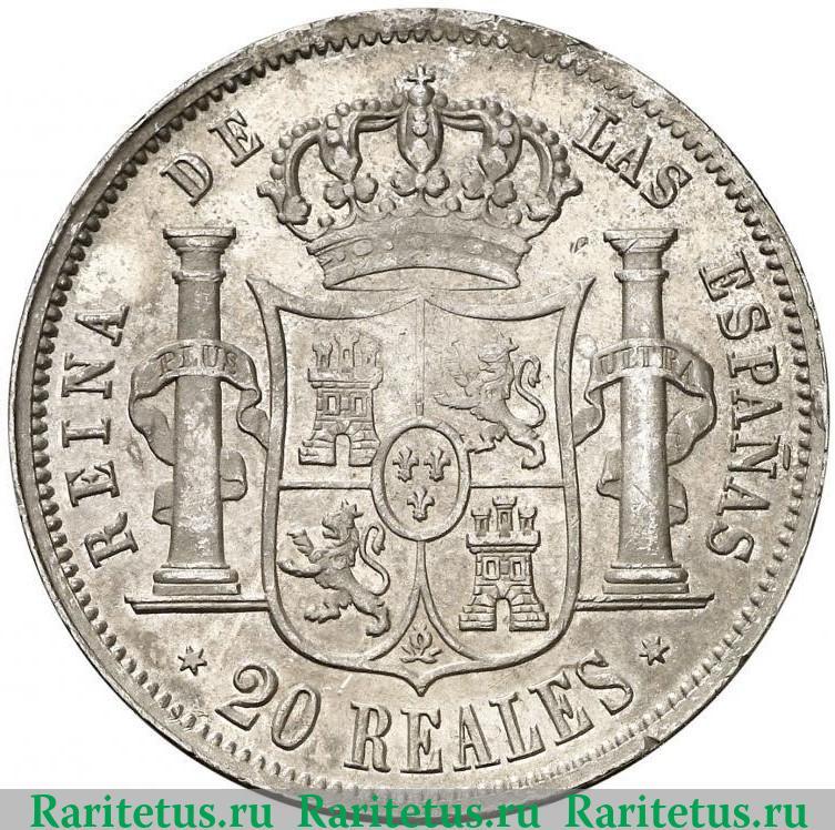 '20 реалов (reales, дуро) 1855 6-и конечная звезда Испания'