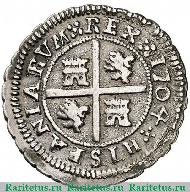 Реверс монеты 2 реала 1701-1708 годов Испания