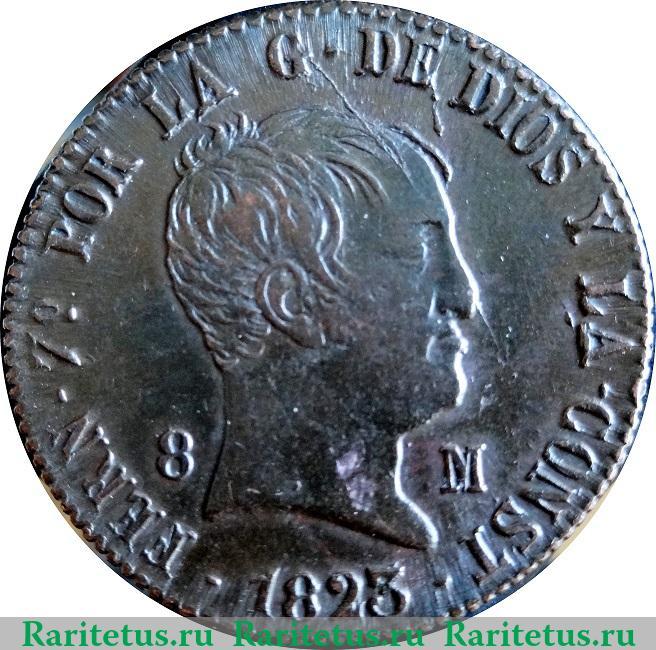 Аверс монеты 8 мараведи 1822-1823 годов Испания