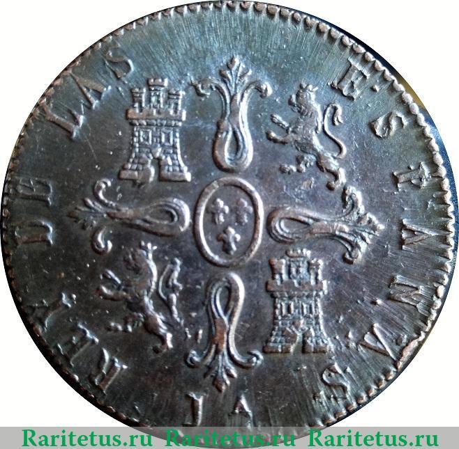 Реверс монеты 8 мараведи 1822-1823 годов Испания