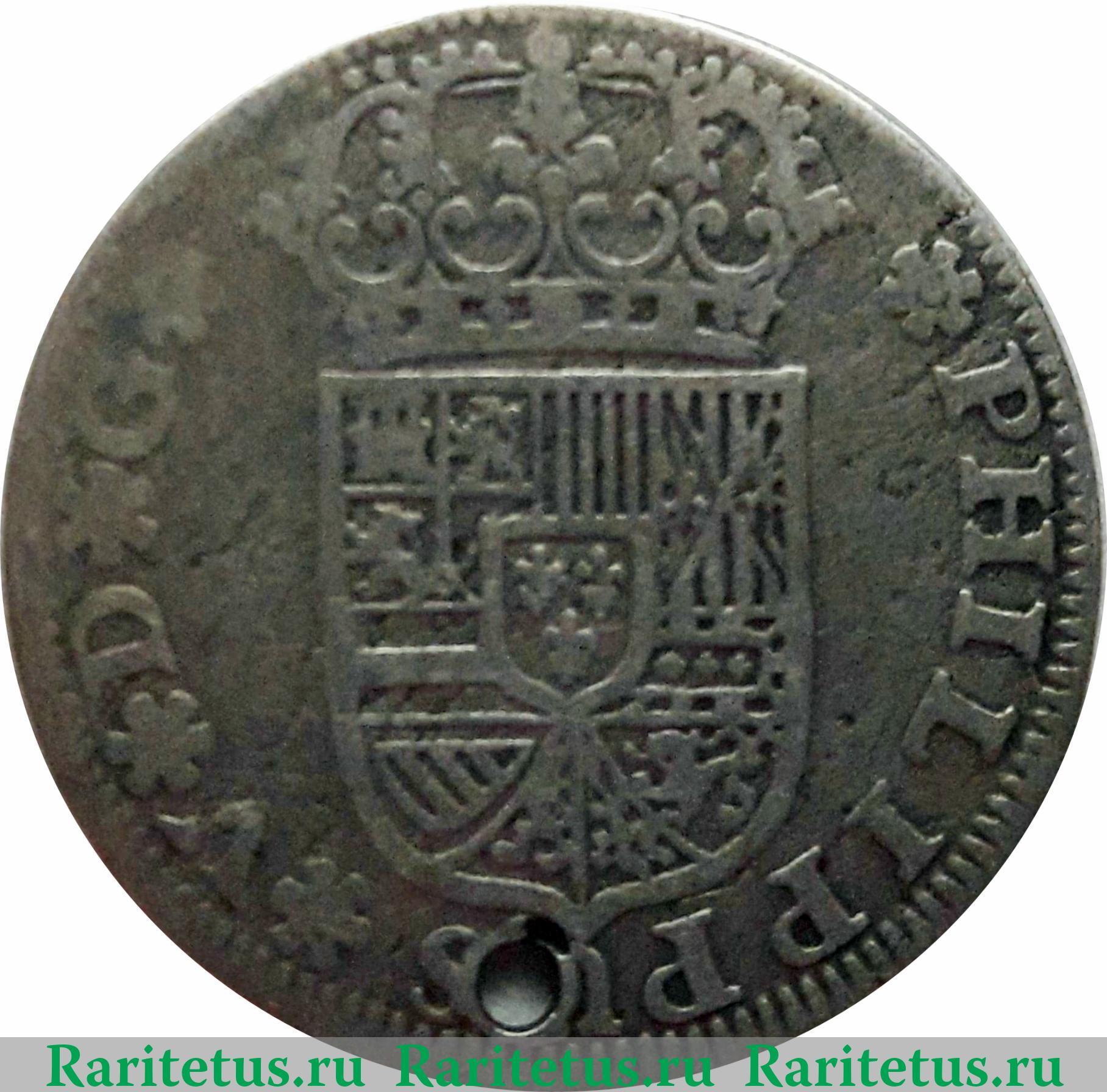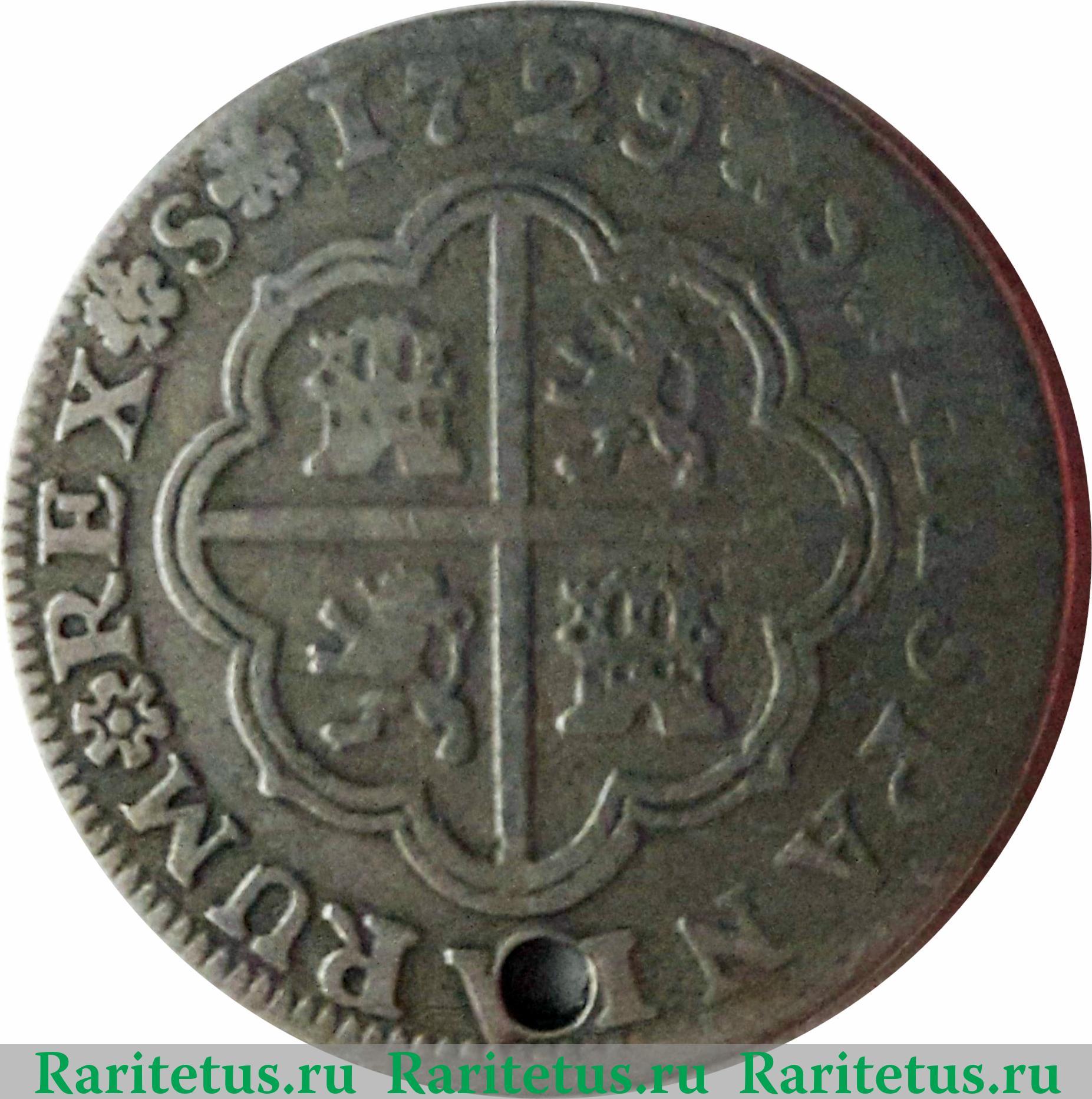 Аверс монеты ½ реала 1729-1730 годов Испания