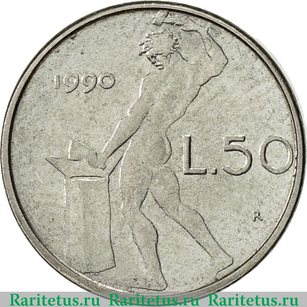Цена на монету 50 лир (lire) 1990 года на сегодня, 22 января 2026 года