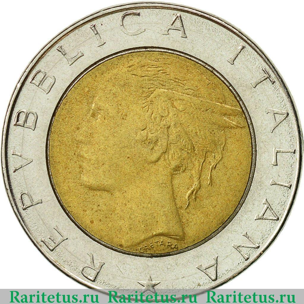 Аверс монеты 500 лир (lire) 1987 года Италия