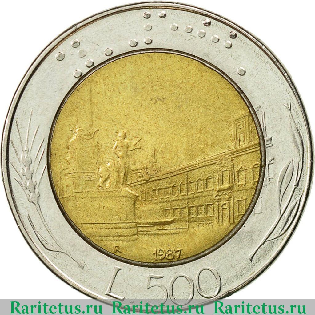 Реверс монеты 500 лир (lire) 1987 года Италия
