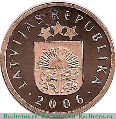 Аверс монеты 2 сантима (santimi) 2006 года Латвия