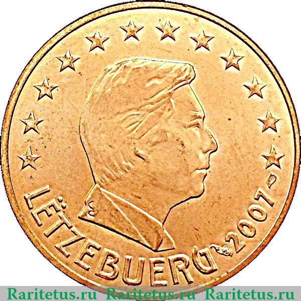В центре профильный портрет вправо Великого герцога Анри. На срезе плеча герцога знак гравера Yvette Gastauer-Claire. Справа, сверху и слева вдоль канта двенадцать пятиконечных звезд. Снизу вдоль канта название государства Люксембург на люксембургском языке: «LËTZEBUERG» и год выпуска 2007, слева и справа от которого расположены знаки минцмейстера и монетного двора.