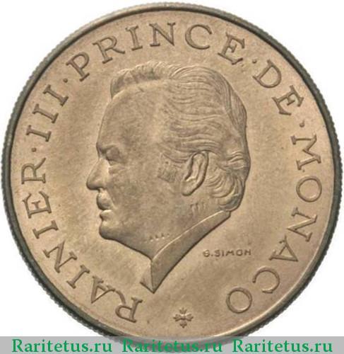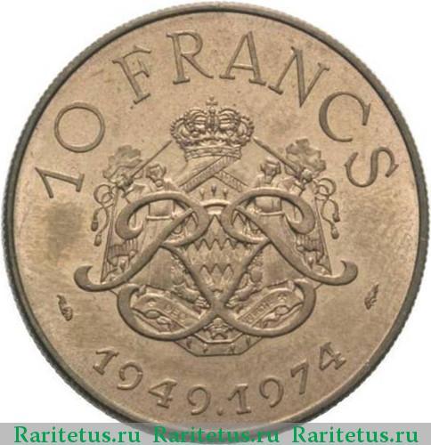 Аверс монеты 10 франков (francs) 1974 года Монако