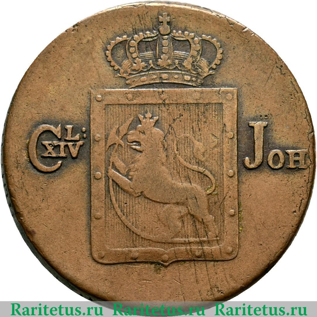 Реверс монеты 2 скиллинга 1822-1834 годов Норвегия