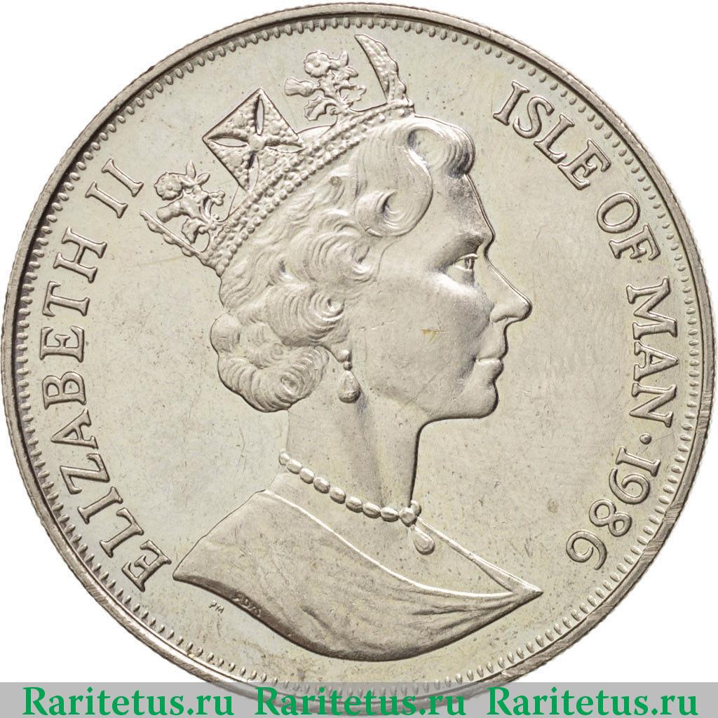 Бюст Елизаветы II вправо. Надписи: ISLE OF MAN / ELIZABETH II·1986.