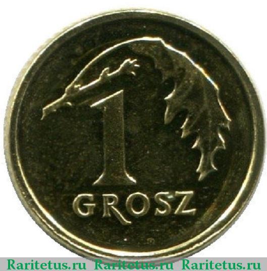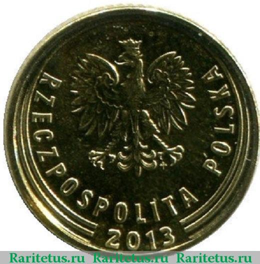 Аверс монеты 1 грош (grosz) 2013 года надпись вокруг Польша