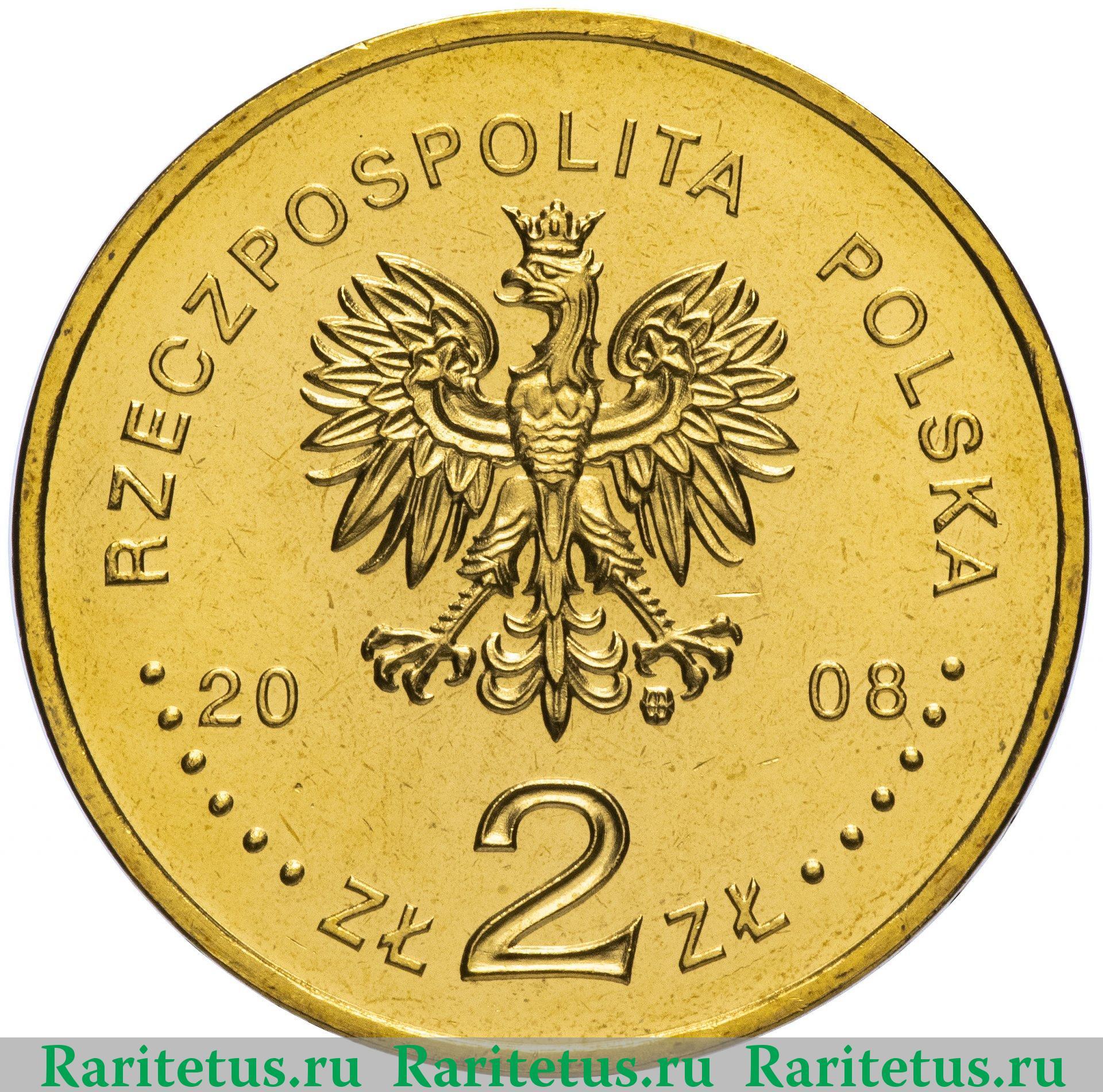 Цена на монету 2 злотых (zlote) 2008 года Казимеж-Дольны на сегодня, 17 апреля 2026 года