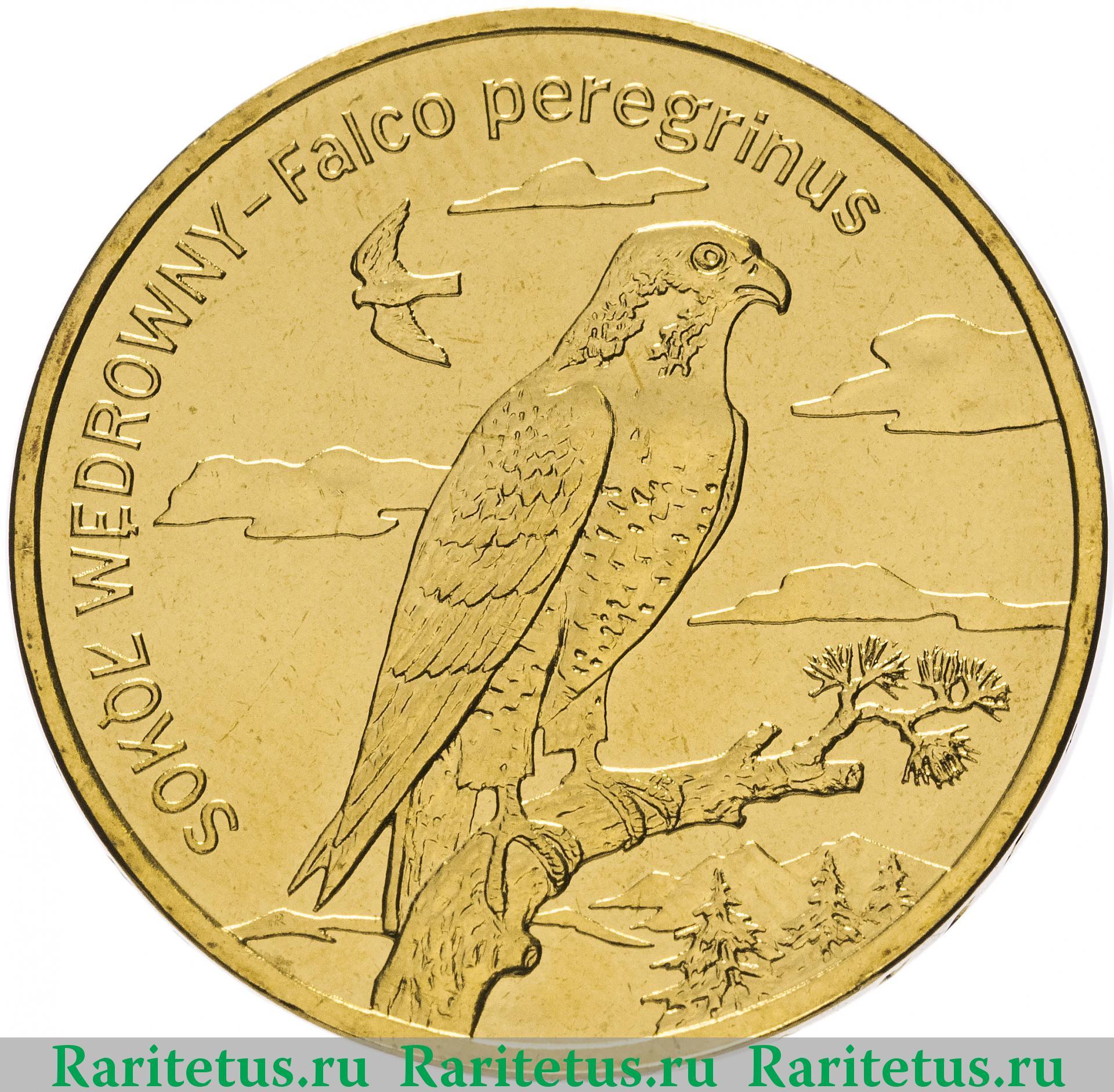 Реверс монеты 2 злотых (zlote) 2008 года сапсан Польша