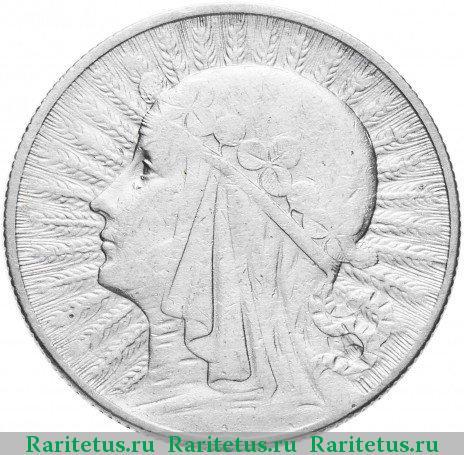 Аверс монеты 5 злотых (zlotych) 1932 года без букв Польша