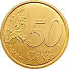 В центре в три строки надпись: «50 EURO CENT» - 50 евроцентов. Слева от надписи контур Европы, от которого в верх и вниз отходит по шесть вертикальных лучей. Слева вдоль канта, пересекая эти лучи, расположено двенадцать пятиконечных звезд. Справа от надписи монограмма «LL» - знак гравера Luc Luycx.