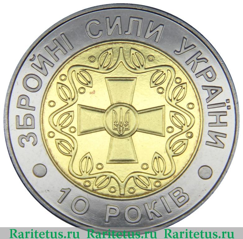 Монета посвящена 10-летию Вооруженных Сил Украины.