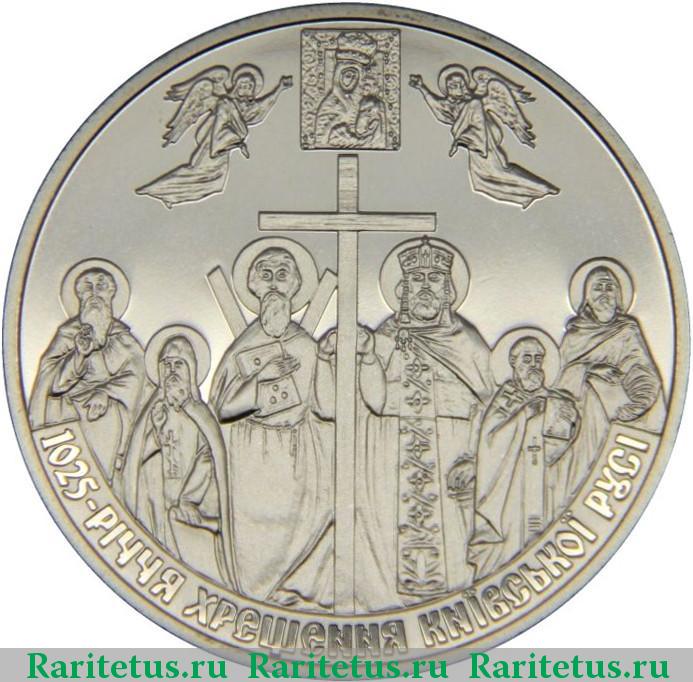 Аверс монеты 5 гривен 2013 года крещение Руси