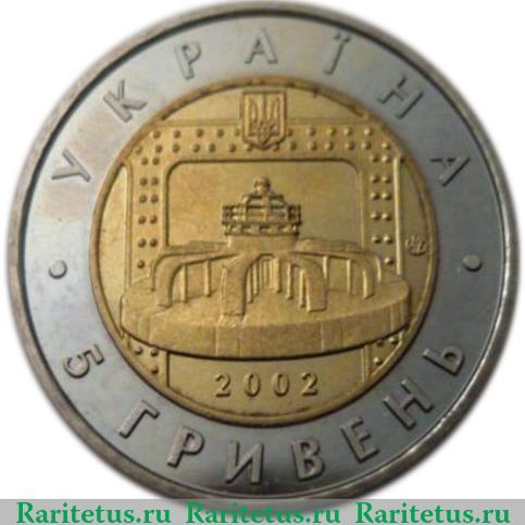 Аверс монеты 5 гривен 2002 года Украина