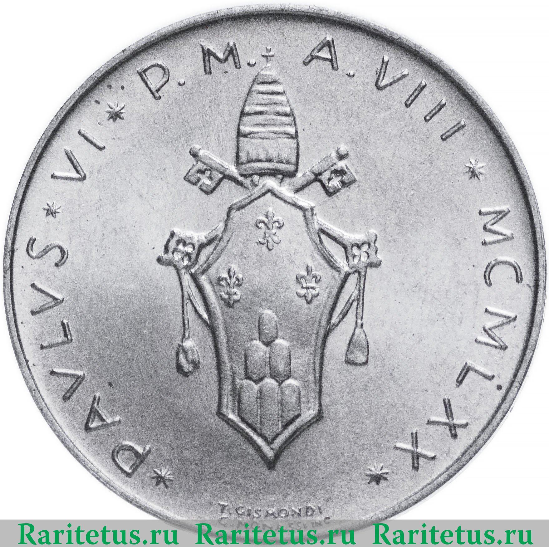 Аверс монеты 1 лира (lira) 1970 года Ватикан
