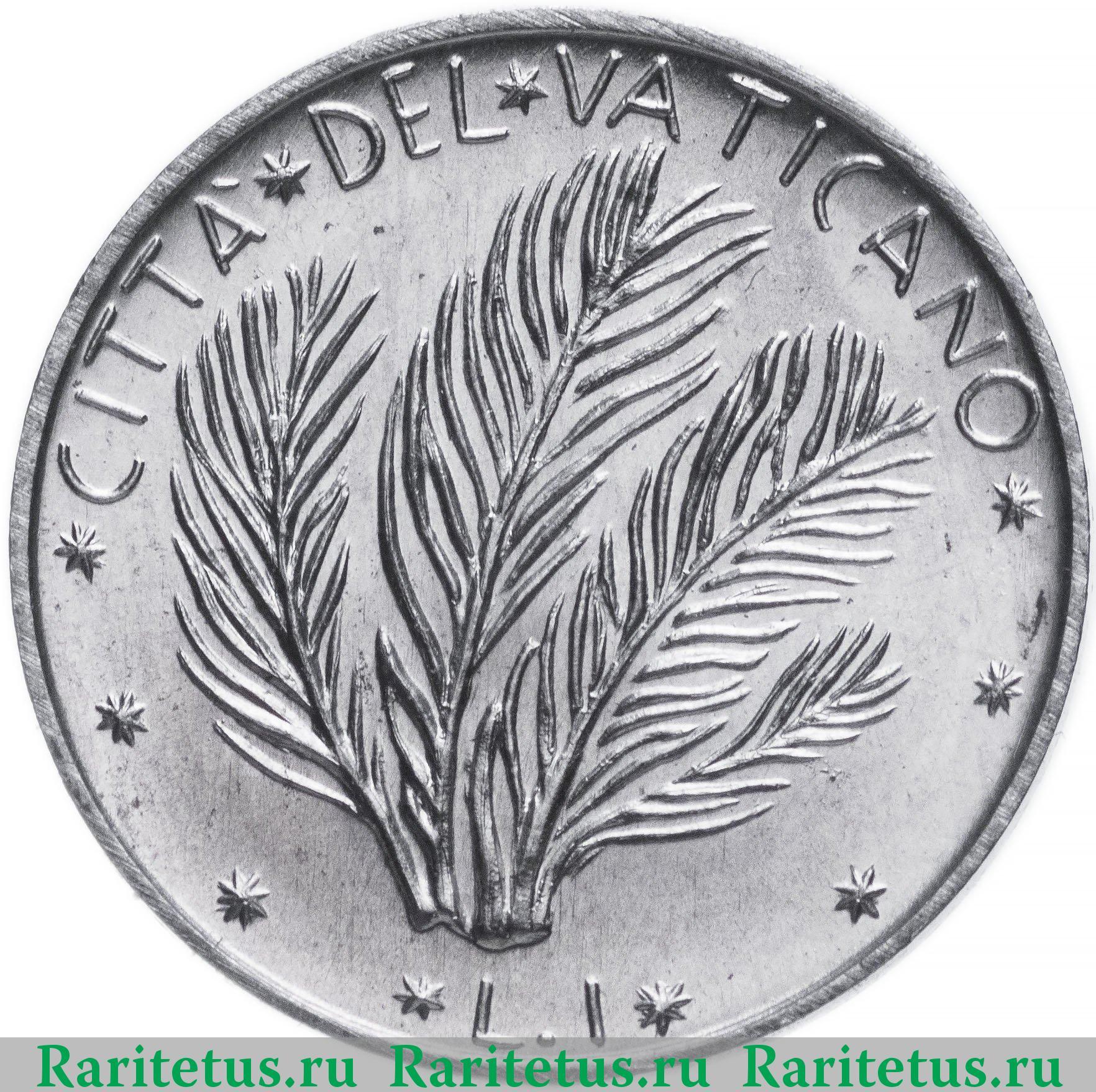 Реверс монеты 1 лира (lira) 1970 года Ватикан