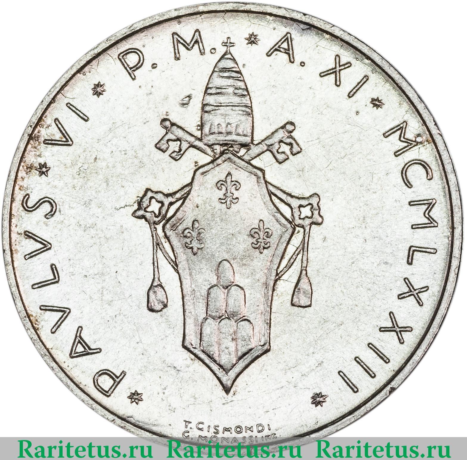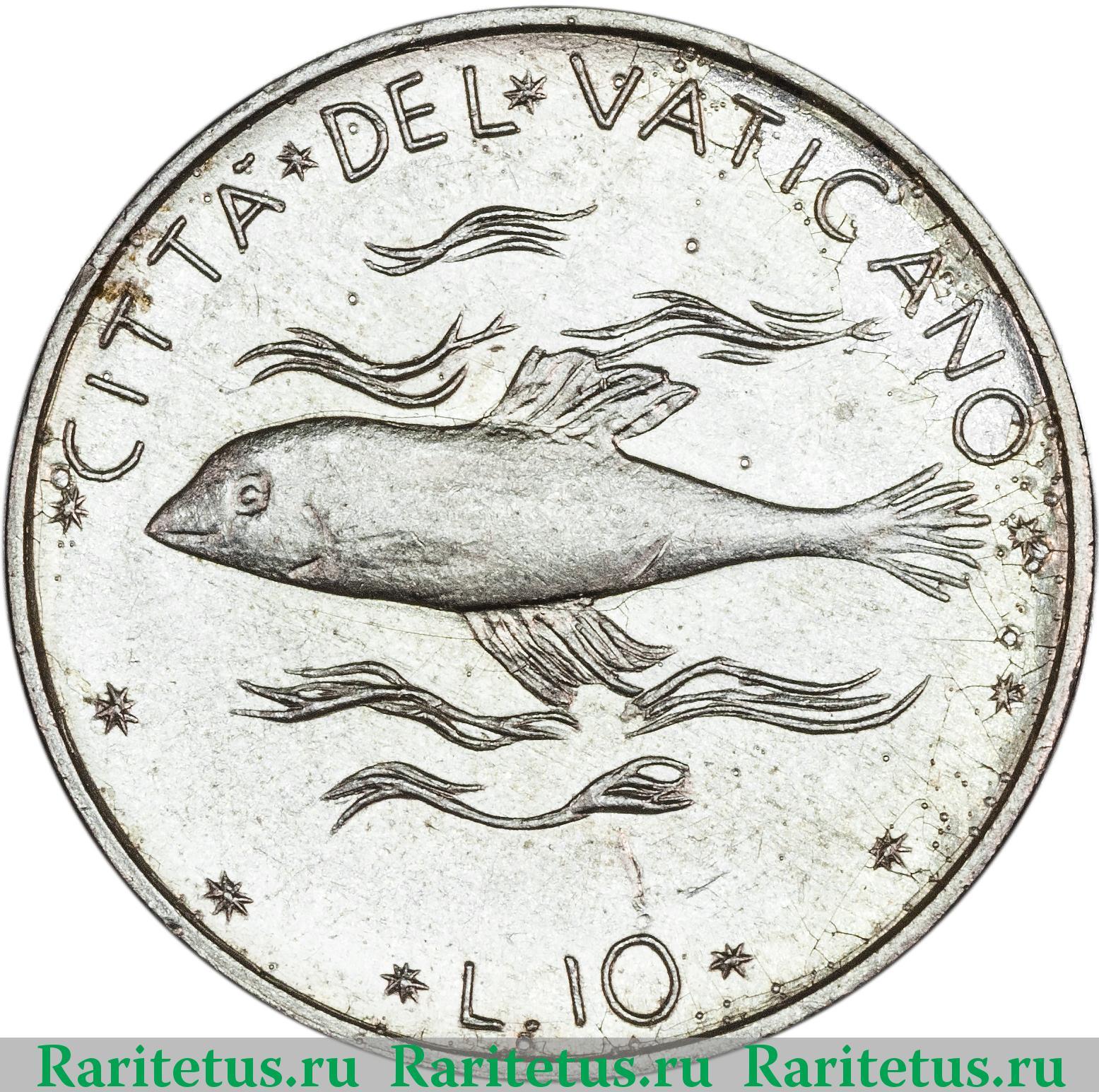 Аверс монеты 10 лир (lire) 1977 года Ватикан