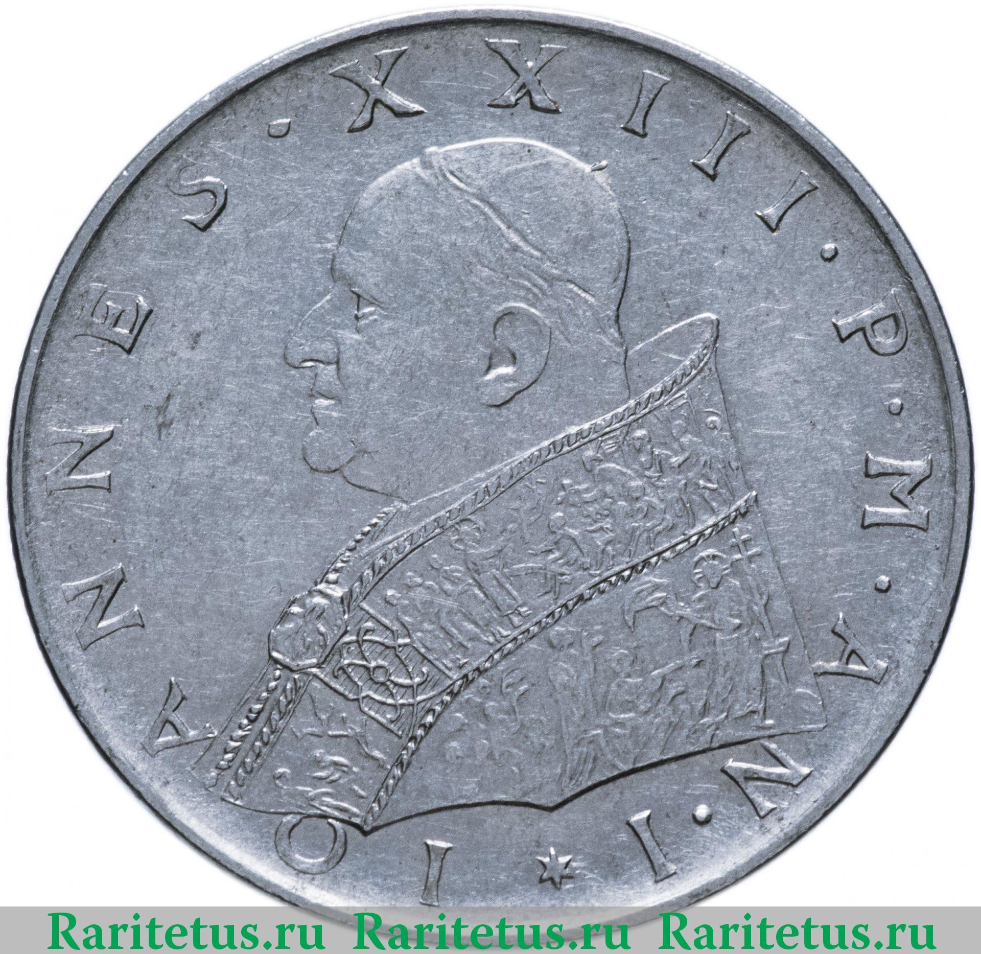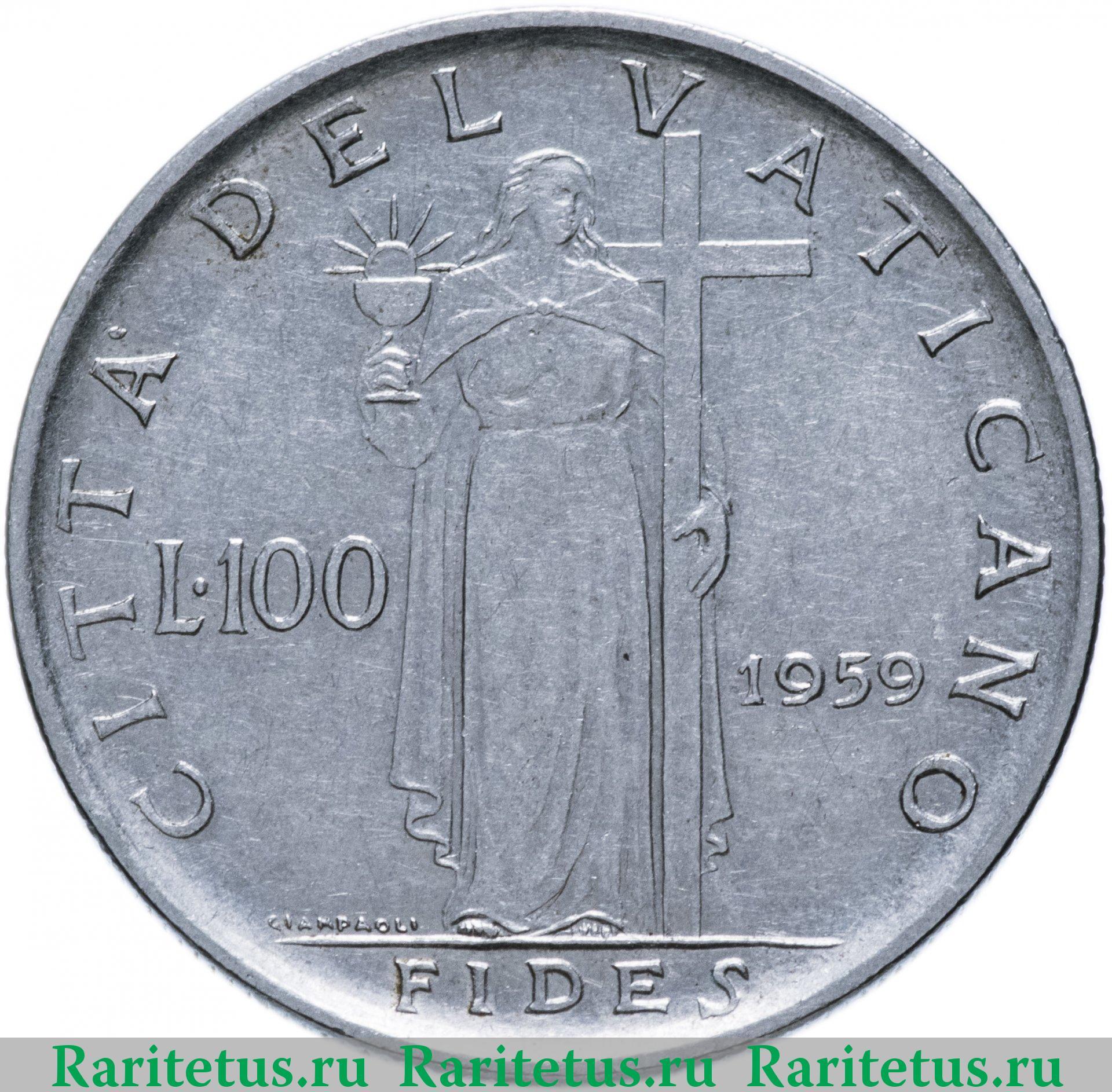 Аверс монеты 100 лир (lire) 1959 года Ватикан