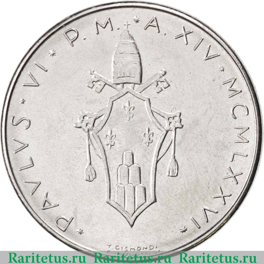 Аверс монеты 100 лир (lire) 1976 года Ватикан