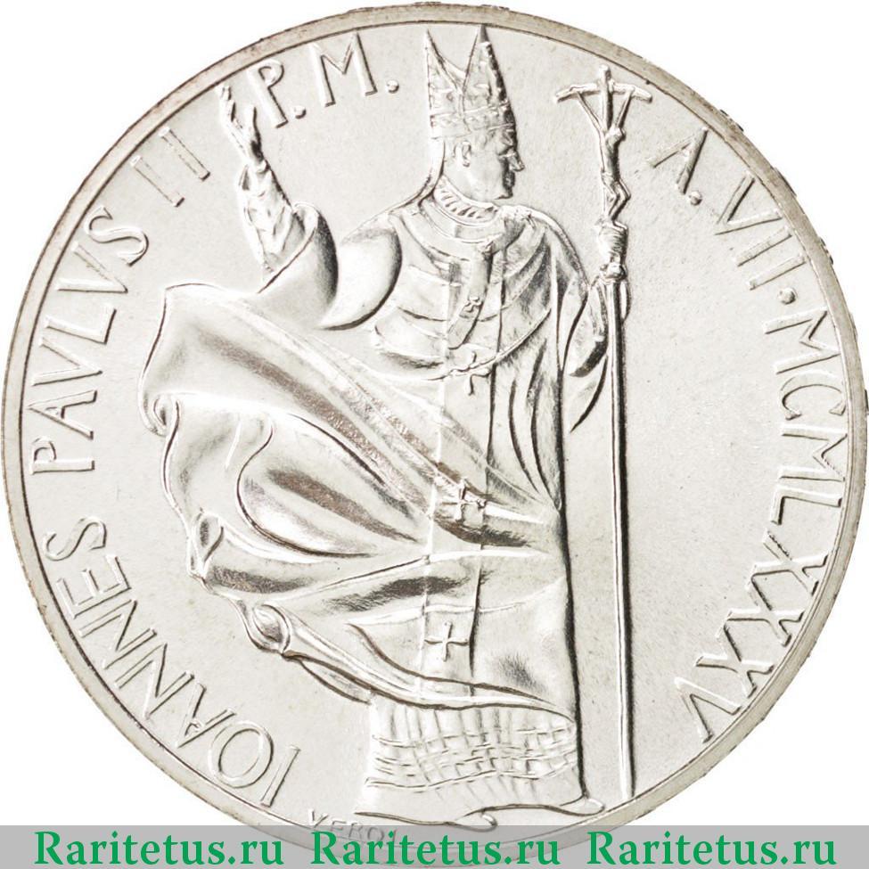 Аверс монеты 1000 лир (lire) 1985 года Ватикан