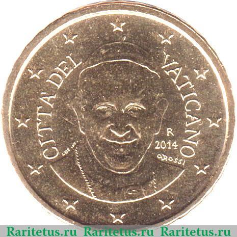 Вдоль канта расположены 12 пятиконечных звезд , символизирующих страны Еврозоны. Слева название страны-эмитента на итальянском языке «CITTA' DEL VATICANO» – «город Ватикан». Справа год выпуска 2014 и буква «R» – минцмарка Монетного двора. В центре портрет папы Франциска I анфас и надписи на ит. яз: «LDS INC» – личный знак гравера Лучианы де Симони и