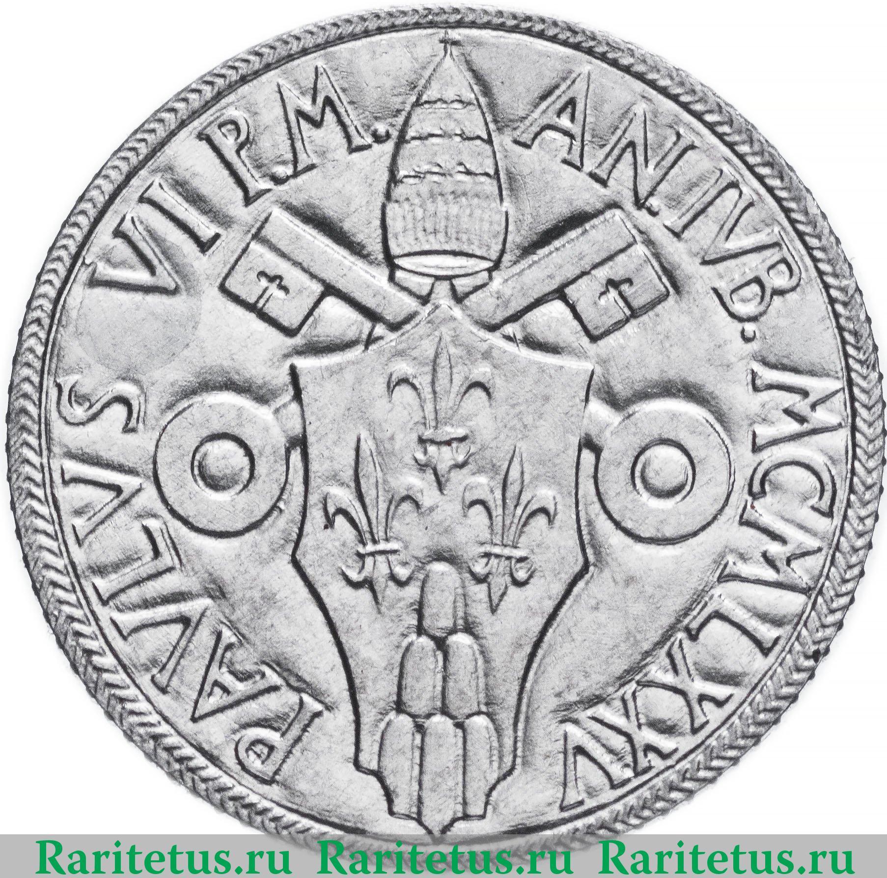 Аверс монеты 2 лиры (lire) 1975 года Ватикан