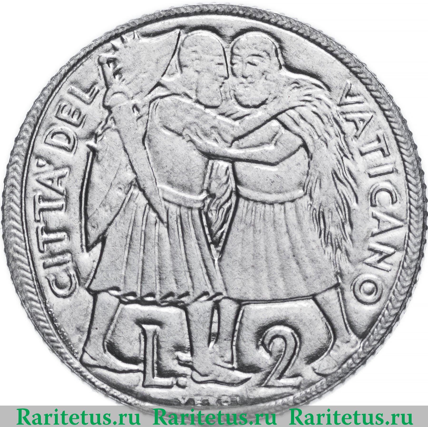 Реверс монеты 2 лиры (lire) 1975 года Ватикан