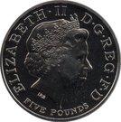 Аверс монеты 5 фунтов 2008 года Великобритания