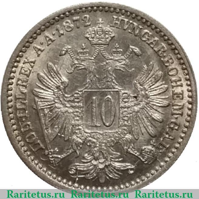 Цена на монету 10 крейцеров (krajczar) 1872 года на сегодня, 24 октября 2025 года