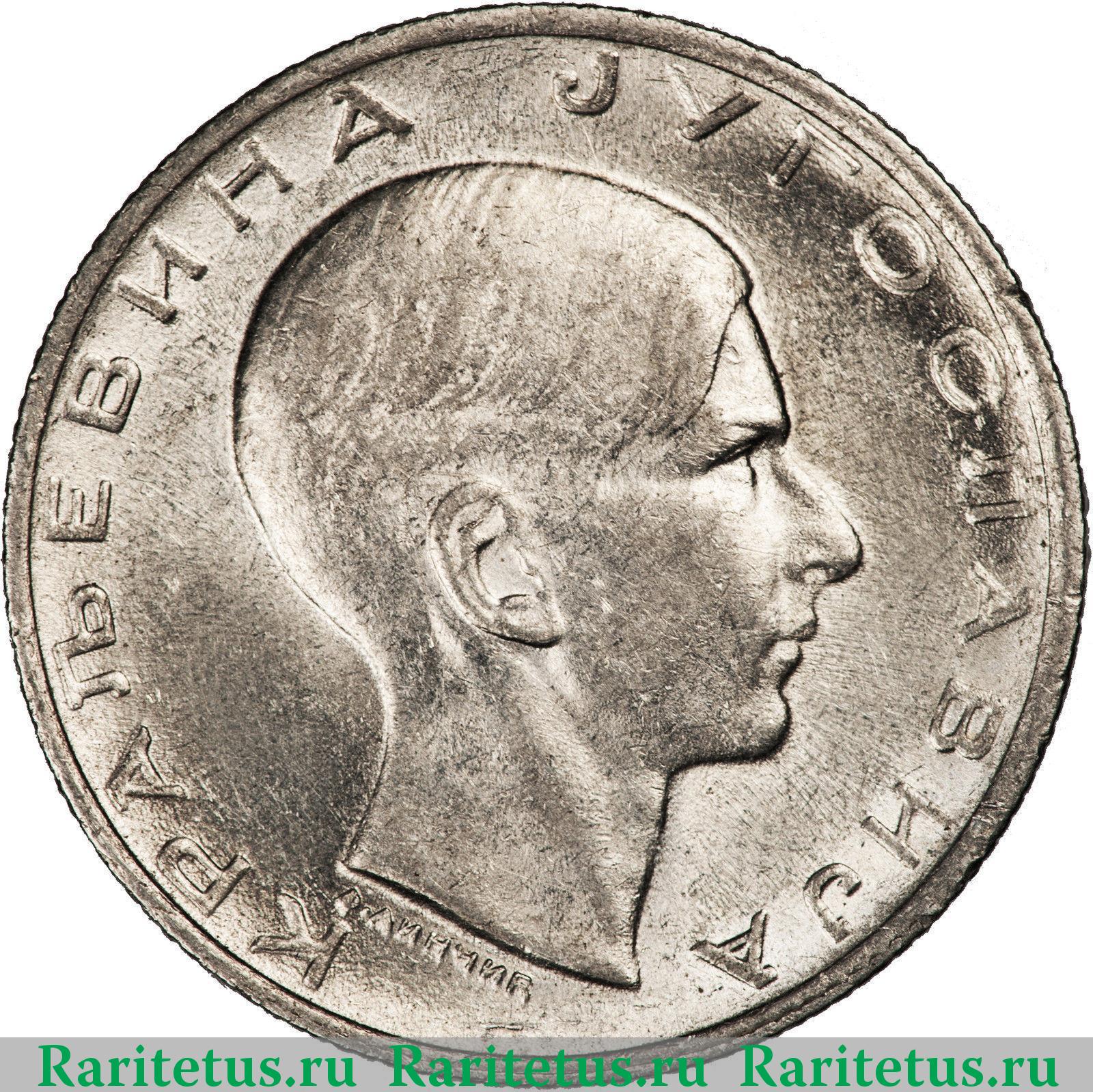 Аверс монеты 10 динаров (dinara) 1938 года Югославия