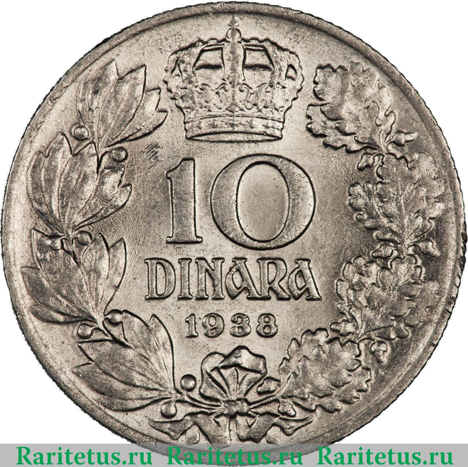 Реверс монеты 10 динаров (dinara) 1938 года Югославия