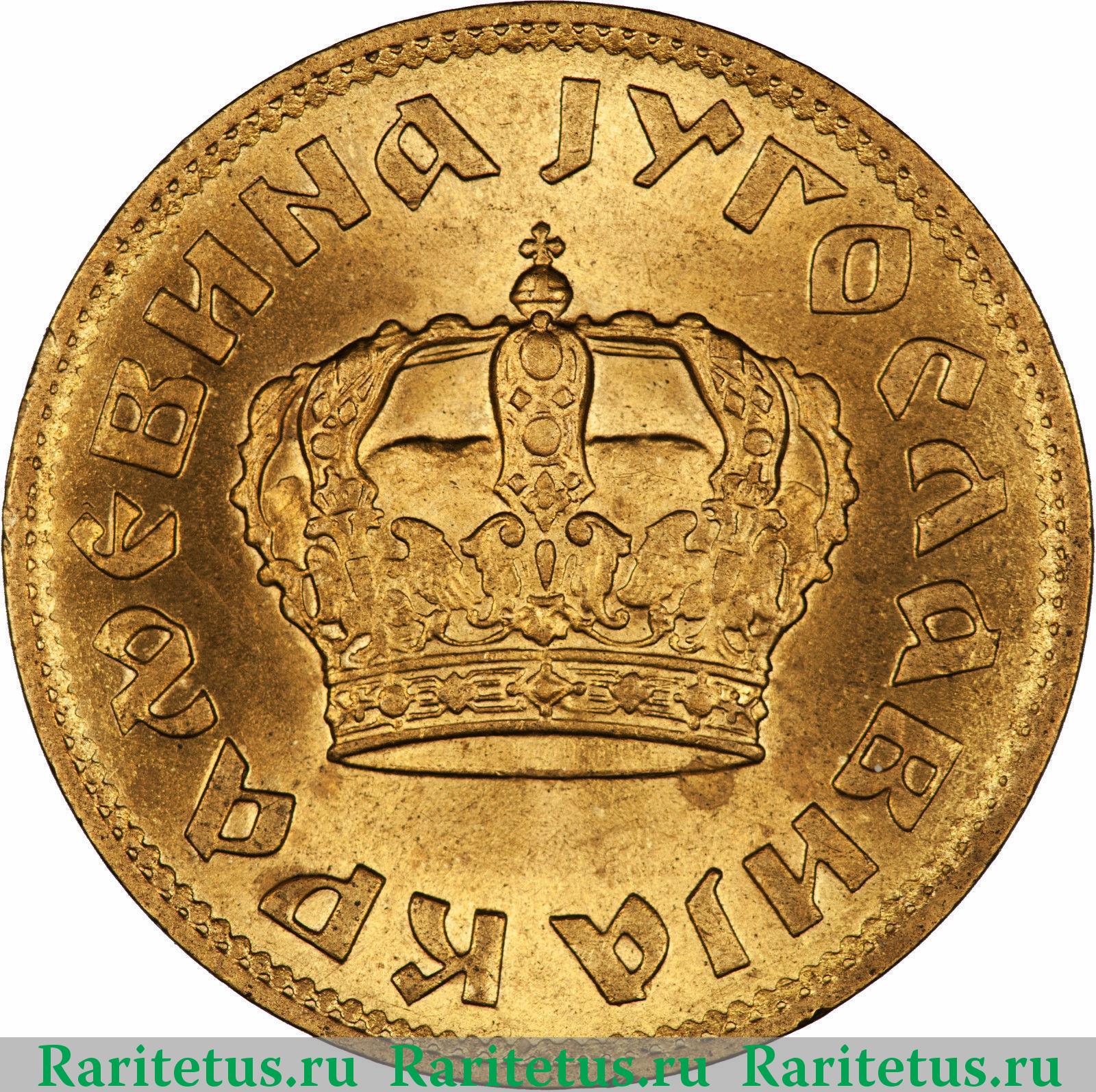 Аверс монеты 2 динара (dinara) 1938 года большая корона, Югославия