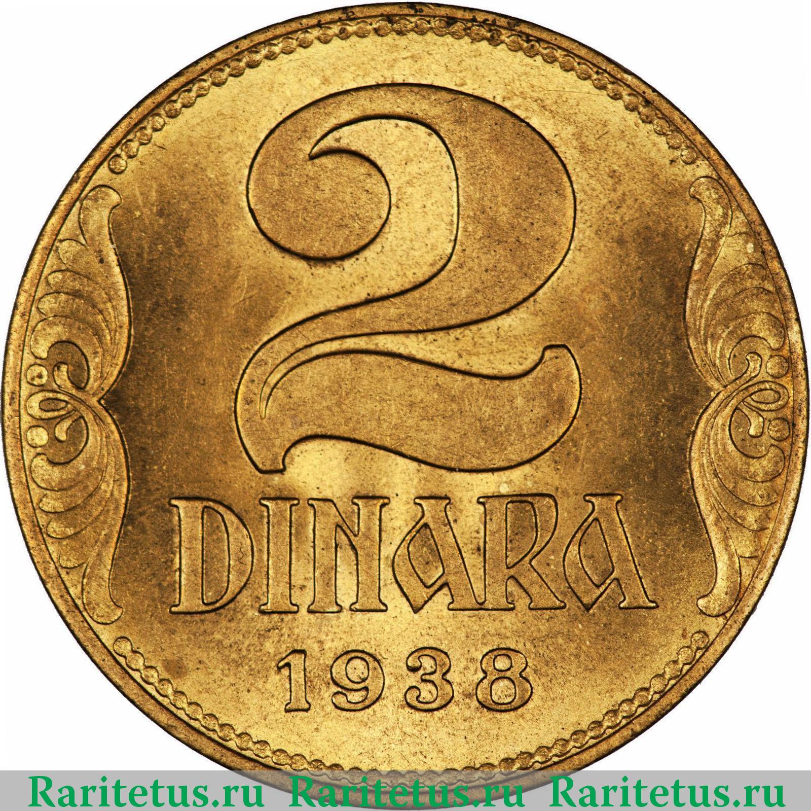 '2 динара (dinara) 1938 большая корона, Югославия'